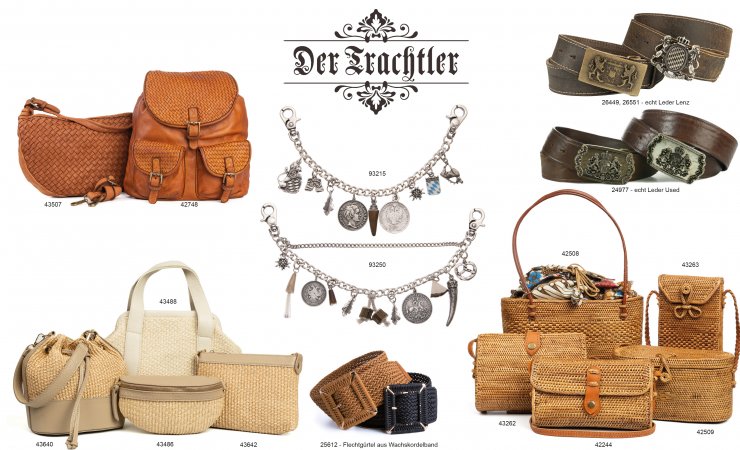 Neben hochwertigen und modischen Gürteln, Taschen, Tüchern & Schals sowie Ketten & Armbändern für Damen und Herren, bieten wir auch eine große Auswahl an Trachtenaccessoires.