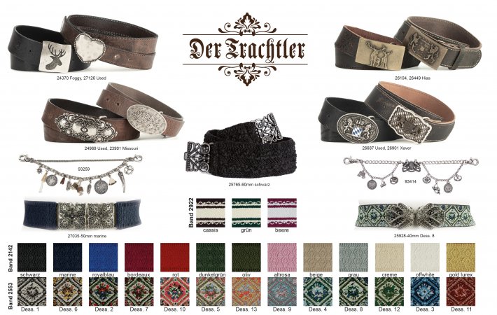 Neben stilvollen Highlights bieten wir eine große Auswahl an Trachtengürteln und Trachtenaccessoires für den gehobenen Fachhandel.